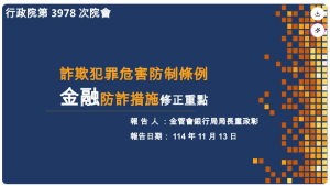 為強化司法警察與金融、虛擬資產業者之間的協作機制,擴大高額財產犯罪處罰適用範疇及加重刑度,強化犯罪被害人損害填補,行政院會今(13)日通過「詐欺犯罪危害防制條例」部分條文修正草案,將函請立法院審議