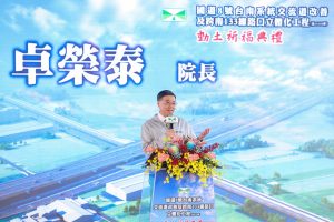 行政院長卓榮泰今(24)日前往臺南市出席「國道8號台南系統交流道改善及跨南133路口立體化工程」動土祈福典禮時表示,國道8號與南133線路口是國8唯一設置紅綠燈的平交路口,為改善此交通瓶頸,在行政院蘇貞昌前院長任內,核定可行性研究報告,陳建仁前院長接續核定建設計畫
