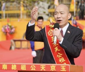 立法院長韓國瑜今(10)日上午出席清水玉京天宮祖總廟龍柱完成大典,希望玉京天公祖總廟落成之後香火能夠非常興旺,保佑大台中地區,也保佑台灣所有善良百姓同胞,讓大家得到平安
