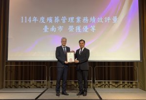 內政部每2年辦理1次「直轄市、縣(市)政府殯葬管理業務評量」,今(17)日舉行114年度頒獎典禮,由內政部政務次長吳堂成頒獎,臺南市府民政局副局長吳明熙代表局長姜淋煌接受表揚。臺南市憑藉殯葬管理政策推動與服務品質整體表現,榮獲全國優等肯定,在市長黃偉哲任內期間已連續6年