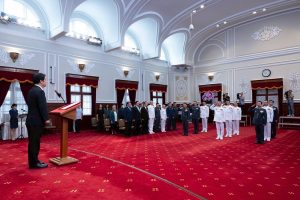 賴清德總統今(24)日上午主持「中華民國114年10月份將官晉任授階典禮」,強調面對威權主義擴張及中國的文攻武嚇,必須持續提升戰力,建構「可恃、可用、可信、全面」的防衛體系,確保國家安全與永續發展。期盼國軍以機動、敏捷為原則,導入新興科技,提升先進軍事科技、武器