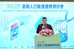 內政部政務次長馬士元今(27)日出席「2025年防制人口販運國際研討會」,與行政院政務委員林明昕、美國在台協會代理副處長牟剛強(John...