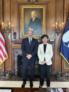 外交部長林佳龍於9月1日接見日本東京大學兩岸關係研究小組訪問團,訪團成員包括該組召集人松田康博教授、亞洲經濟研究院上席主任調查研究員佐藤幸人教授、神奈川大學川上桃子教授、學習院大學江藤名保子教授、拓殖大學門間理良教授及東京大學特任研究員黃偉修等6人,雙方就兩岸