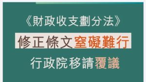 針對立法院第11屆第4會期第9次會議三讀通過修正《財政收支劃分法》部分條文,經研議全案確有窒礙難行之處,因此行政院會今(27)日依憲法增修條文第3條第2項第2款規定,通過覆議案,行政院長卓榮泰並於院會後親自出席記者會說明行政院提出覆議之理由
