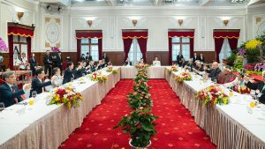 外交部長林佳龍偕常務次長葛葆萱於今(21)日在台北賓館午宴吐瓦魯國總理戴斐立(Feleti...