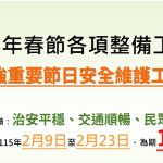 本次春節連假實施高乘載管制措施,2月19日至20日於西部國道北向實施;2月18日至21日於國5北向實施,請民眾多加留意並配合。高公局預祝大家連續假期快樂、行車平安。2026/02/04