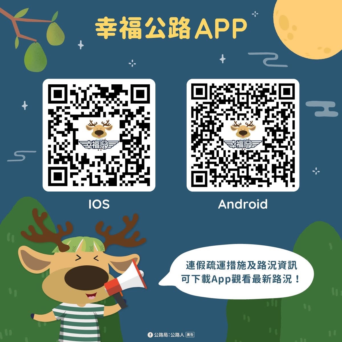 公路局已規劃省道路段替代道路,用路人可遵循沿線指示標誌行駛,呼籲民眾多加利用幸福公路App、CMS及警廣獲得壅塞路況與旅行時間資訊。