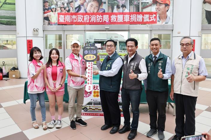 【記者陳怡如/台南】太陽國際企業董事長王怡仁與兩位女兒共同經營的金鋼興業、競美國際企業,共同合資捐贈1輛價值400萬元的高規格救護車予台南市政府,今(24)日上午於永華市政中心舉辦救護車捐贈典禮,未來將交由消防局使用,強化急救能量,守護市民健康。