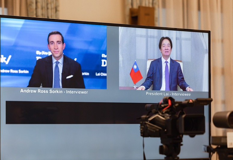 賴清德總統日前以視訊方式接受《紐約時報》(The New York Times)「DealBook Summit」主持人Andrew Ross Sorkin專訪,針對我國國防、兩岸關係、臺美關係、俄烏戰爭及半導體產業等議題進行回應。專訪內容於今(4)日凌晨播出