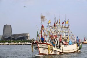 全臺3月瘋媽祖,高雄也迎接四年一度民俗盛事,四年一科的「林園鳳芸宮媽祖海巡」展開平安遶境巡香之旅,今(11)日傍晚聖駕返抵高雄港,市長陳其邁前往接駕扶轎,他形容天上聖母可比宗教界的泰勒絲,深受信徒敬重愛戴,也祈求媽祖神威顯赫,庇佑高雄平安順利、四時無災,國泰民安、風調雨順