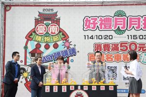 台南市政府推動「臺南購物節」,活動熱度持續升溫,累計消費登錄金額突破60億元。今(31)日於新光三越小西門舉辦好禮月月抽第三次抽獎,現場抽出總值超過90萬元的多項好禮。台南市副市長趙卿惠代表市長黃偉哲出席活動,邀請全國民眾把握春節連續假期來台南,走訪各大商圈、市場及