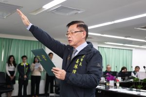 台南市政府今(13)日於市政會議辦理新任副市長姜淋煌宣誓就職,由市長黃偉哲擔任監誓人。黃偉哲勉勵姜副市長上任後繼續發揮所長,也期許三位副市長、秘書長以及三位副秘書長等府層同仁,同心協力強化市政治理基礎,回應市民期待