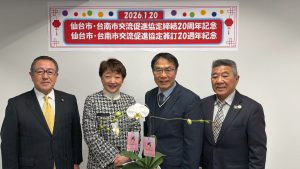 台南市與第一個日本友誼市仙台市在今(20)日歡慶締盟20周年,黃偉哲市長在此重要時刻偕同台南市身心障礙體育運動總會理事長蔡有仁赴仙台市進行拜會,今日分別會晤仙台市長郡和子及議長野田讓,並親自頒贈「榮譽市民證書」給野田讓議長,感謝其長期推動兩市社福及各項交流的傑出