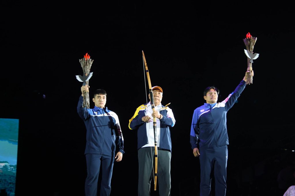開幕典禮運動員宣誓以族語及國語兩種語言呈現,分別由傳統狩獵陸富田選手及慢速壘球石焌廷選手擔任。隨後進行聖火引燃,由高雄原鄉區的優秀運動員手持聖火繞場,分別為那瑪夏區兩屆帕運標槍金牌得主江志忠,以及桃源區舉重全國紀錄保持人謝孟恩,兩位聖火手將聖火傳給弓箭手第一位原住民籍亞運拳擊國手蔡達利,以弓箭射向酒甕聖火台,引燃114年全國原住民族運動會的聖火,也象徵致敬高雄原鄉族人運動員。活動最後,則由阿美族饒舌歌手AZ李孝祖主題曲演唱Kiemel(中文歌名:贏了),為開幕活動畫下完美句點。
