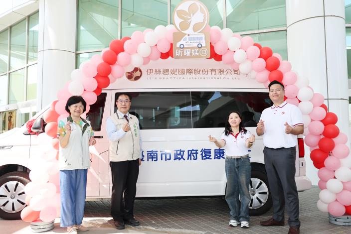 響應臺南市長黃偉哲照顧弱勢優先的施政理念,伊絲碧媞國際股份有限公司捐贈1輛高頂復康巴士及洗髮露1,500瓶、沐浴露1,000瓶,今(28)日於永華市政中心2樓迴廊舉行捐贈儀式,董事長劉依淳及總經理陳睿紳代表出席,市長黃偉哲代表接受並回贈感謝狀及臺南特產蘭花