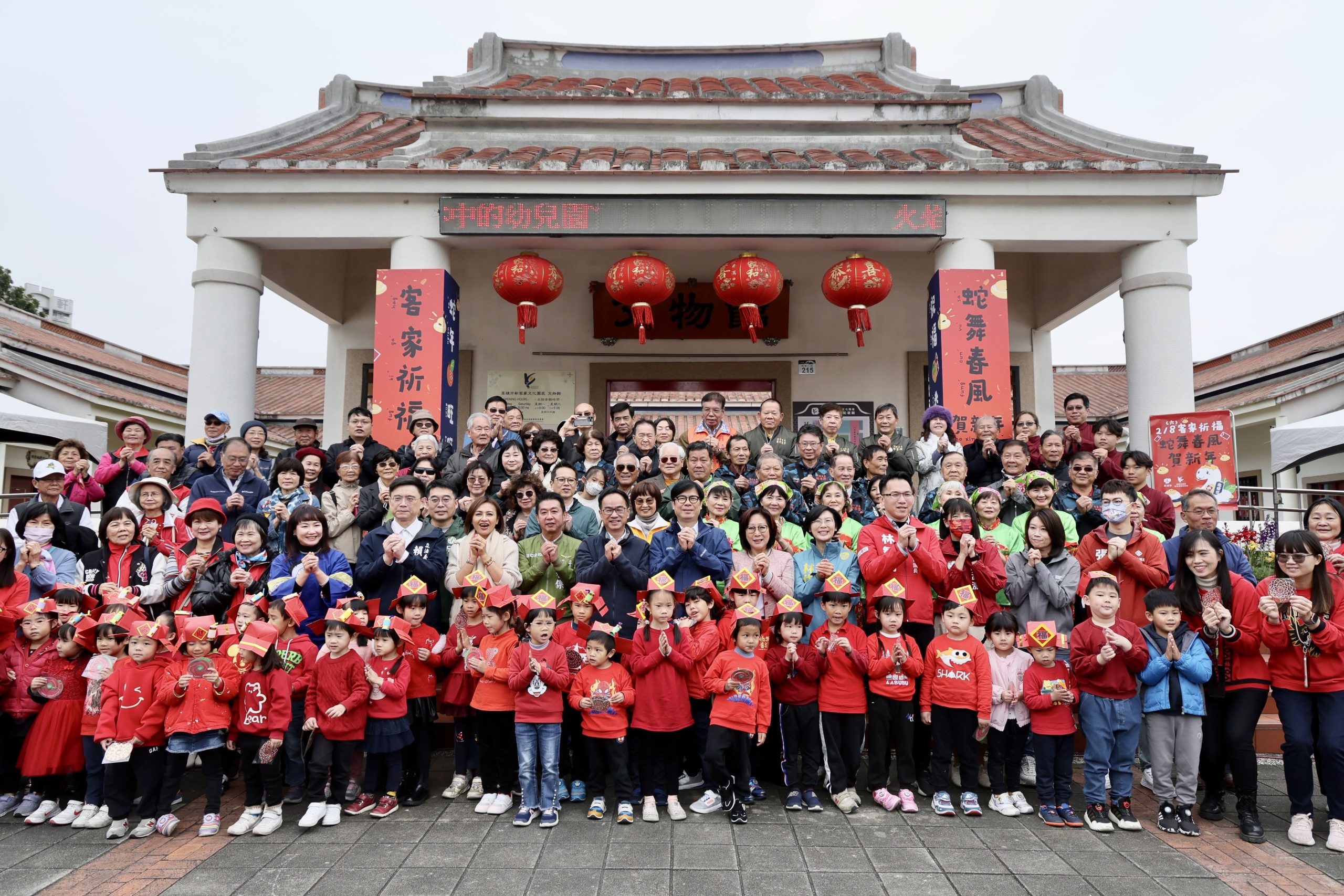 高雄市客家事務委員會8日於新客家文化園區文物館舉辦「新春祈福」活動,高雄市長陳其邁、議長康裕成、副議長曾俊傑、議員張博洋、黃香菽、何權峰、邱俊憲、林智鴻、鄭孟洳、李喬如、以及立法委員賴瑞隆、李昆哲、林岱樺、邱議瑩、許智傑,客委會主委楊瑞霞與客家鄉親們共同見證這場充滿客家文化與祝福的盛大慶典。
