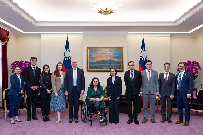 達克沃絲參議員訪問團一行由外交部次長陳明祺、美國在台協會(AIT)台北辦事處處長谷立言(Raymond Greene)陪同,前來總統府拜會蕭副總統。2025/05/28