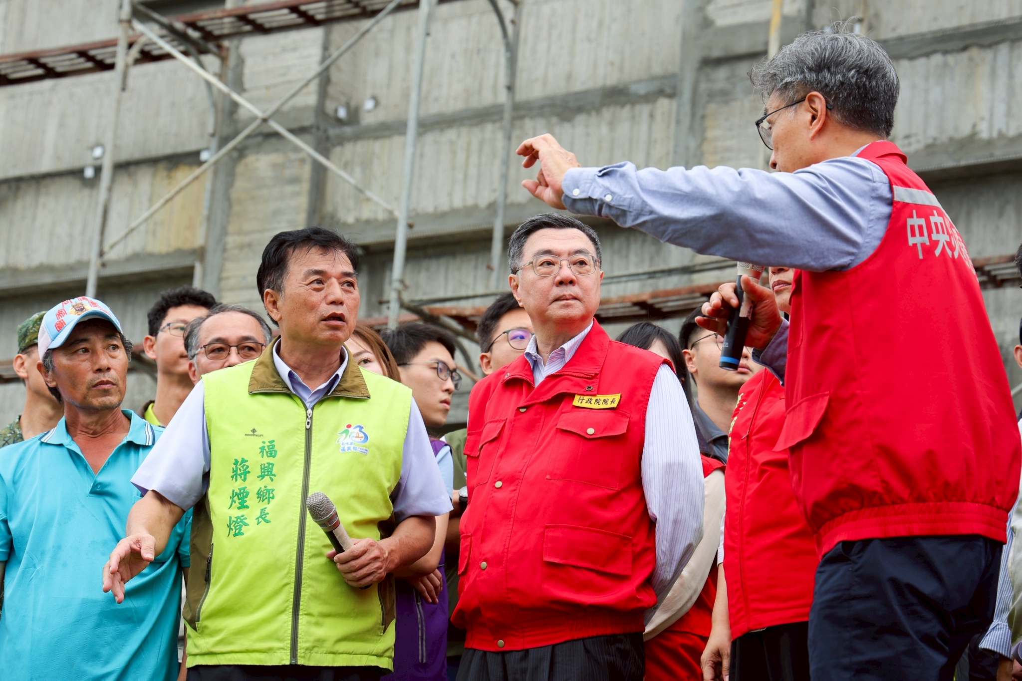 今日卓榮泰也前往鹿港鎮視察淹水及後續治水工作推動情形,並聽取經濟部水利署署長林元鵬說明災情簡報。彰化地區於本(7)月8日上午強降雨超過保護標準,導致7鄉鎮積淹水面積達52.4公頃,目前均已退水。林元鵬表示,為持續提升彰化地區防洪韌性,前瞻基礎建設計畫已投入58.3億元;同時,去(2024)年凱米颱風過後,再核定22.2億元,目前系統化治理已發揮成效,不僅加速彰化地區退水時間,更減少淹水面積。