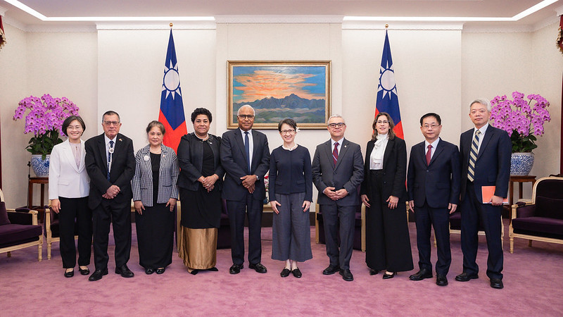 駐聯合國常任代表訪問團一行包括馬紹爾群島駐聯合國常任代表席克(John M. Silk)、巴拉圭駐聯合國常任代表斯卡畢尼(Marcelo Eliseo Scappini Ricciardi)、斐濟駐聯合國常任代表塔拉吉尼吉尼(Filipo Tarakinikini)等,由外交部次長葛葆萱、駐紐約辦事處大使李志強陪同,前來總統府拜會蕭副總統。2025/11/05