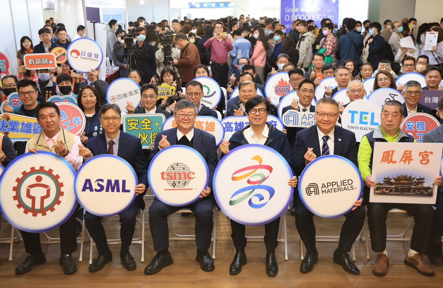 【記者陳采琳/高雄】高雄半導體產業聯合徵才活動今(8)日於楠梓區聖雲宮活動中心舉辦,高雄市長陳其邁偕台積電副總經理陳培宏、台灣應用材料台灣區總裁余定陸等人,到場為求職朋友及廠商加油打氣。陳其邁表示,此次高市府勞工局與台積電等共18家包含半導體國際大廠在內的廠商共同舉行聯合徵才活動,總計有1,200個職缺,包含工程師、管理師等優質就業機會,希望能媒合優秀人才,歡迎年輕朋友多加利用。陳其邁也引用台積電攤位標語「世界上的每一個夢,都由我們來圓夢」,祝福每一個年輕朋友都能找到適合自己專才以及興趣的工作。