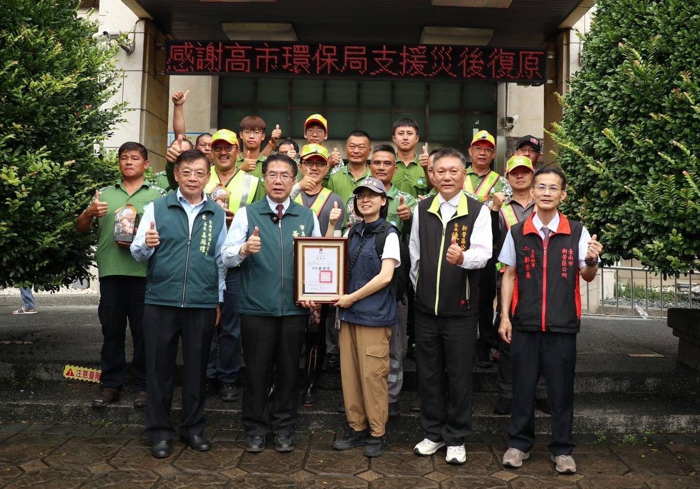 丹娜絲颱風本月7日過境後,陳其邁立即指示工務局、消防局、環保局等相關單位盤點支援救災量能,當日集結完成隨即前往,兩小時內抵達災害現場後,隨即展開災害復原工作,各救災同仁日以繼夜,於今日任務告一段落,明日將回歸原工作崗位繼續執行任務,各救災英雄為公共利益義勇當先的精神,深受地方民眾肯定與感謝,救災期間市長陳其邁、市府相關局處首長及嘉義縣長翁章梁、嘉義市長黃敏惠、台南市長黃偉哲等地方官員、民意代表及民間團體多次前往災區現場打氣及慰問,協助救災弟兄士氣激昂,一致表示為受災同胞付出,責無旁貸,是責任也是榮譽,再辛苦也值得,令人深深感動。